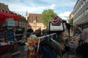 Zwei Mal pro Jahr steigt der traditionelle Trempelmarkt in der Nürnberger Innenstadt – fast alles Unerdenkliche soll an den Mann/Frau gebracht werden, Feilschereien inbegriffen. Es wird fast nichts angeboten, was es nicht gibt. Mal aus Spaß, Eifer oder als Hobby, mal professionell. Bücher, Schallplatten, Klamotten, Schmuck – der Auftakt am Freitag war sehr verheißungsvoll, da schmeckte das Gläschen Prosecco bei FRANCO, der Nürnberger Trempelmarkt schloss am Samstagabend, diverse Regengüsse inbegriffen.