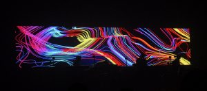 Die Töne tanzten verrückt durch die Halle, die Ohren wanderten mit, die Augen verfingen sich an der großen Leinwand im Farbenmeer