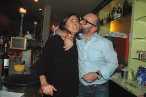 Der Vorhang fiel, das letzte Seidla wurde geöffnet und geleert. Die Metrodrom-Ära von Betreiberin Christine ging am 4. Februar 2017 zu Ende. Ein letztes Bussi… Altmühltal Classic-Sprint Macher Uwe Wießmath (rechts) hatte im Dezember 2016 seinen 50. Geburtstag dort gefeiert. Foto: Matthias Hertlein