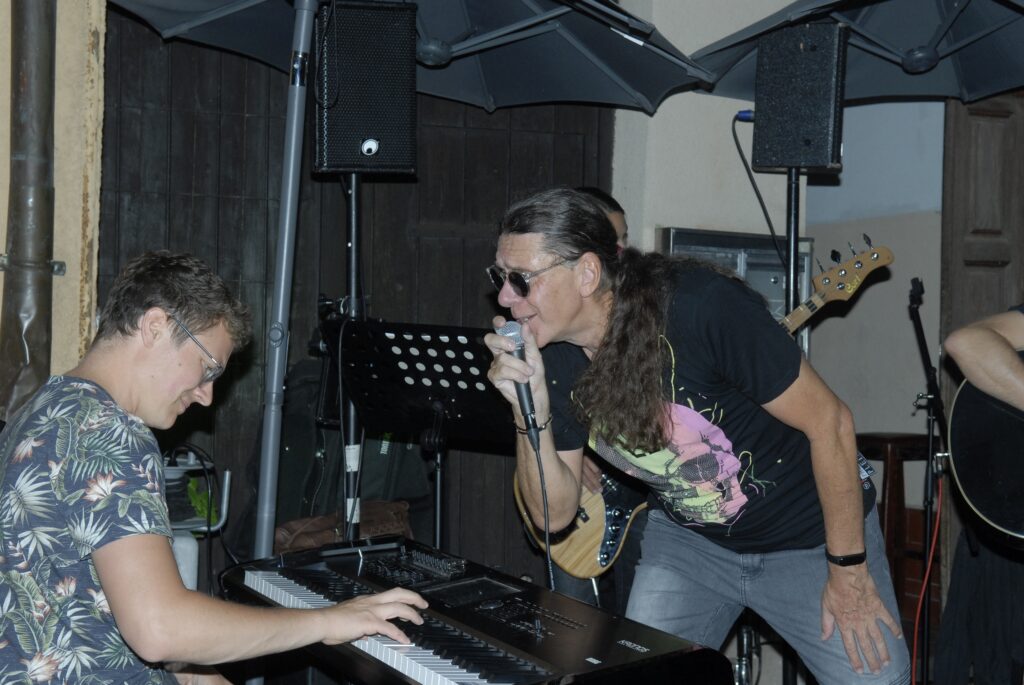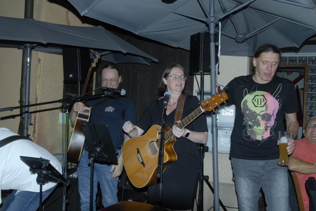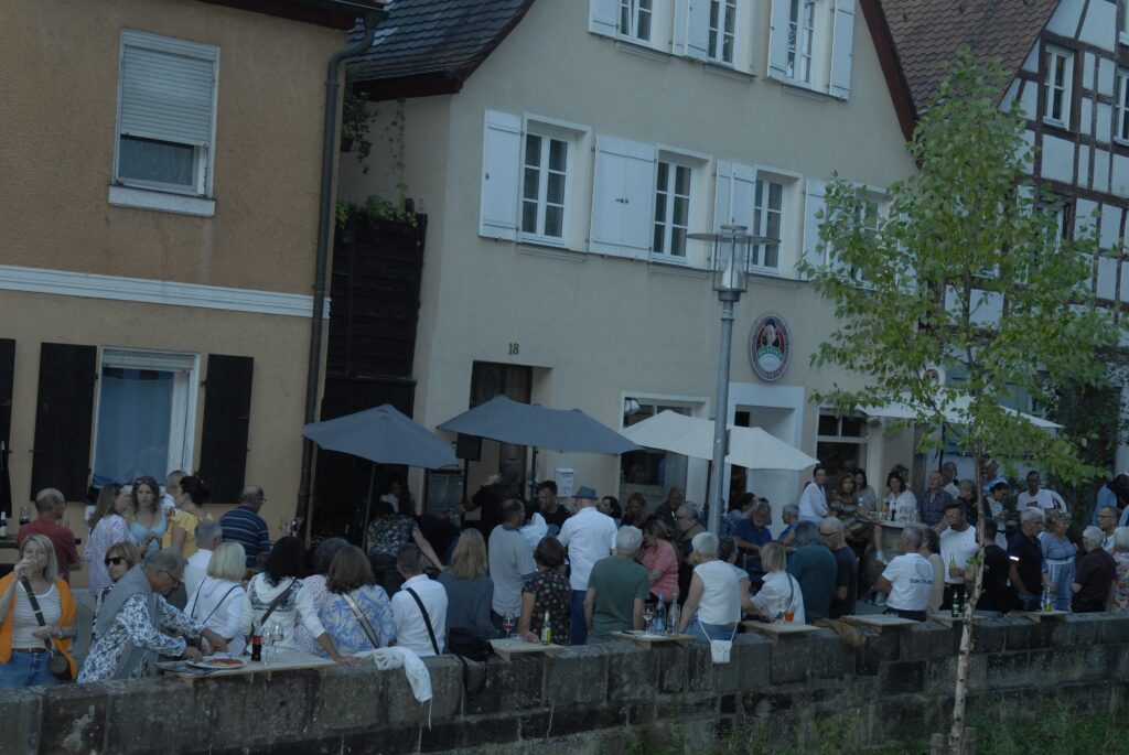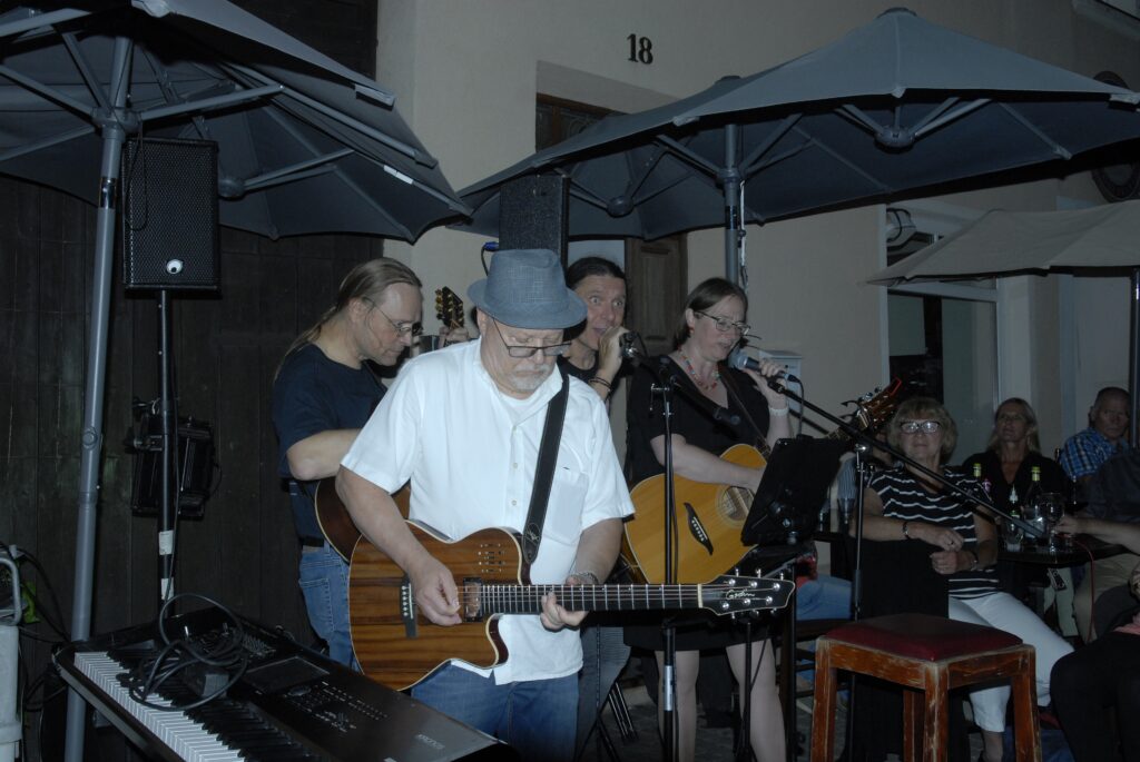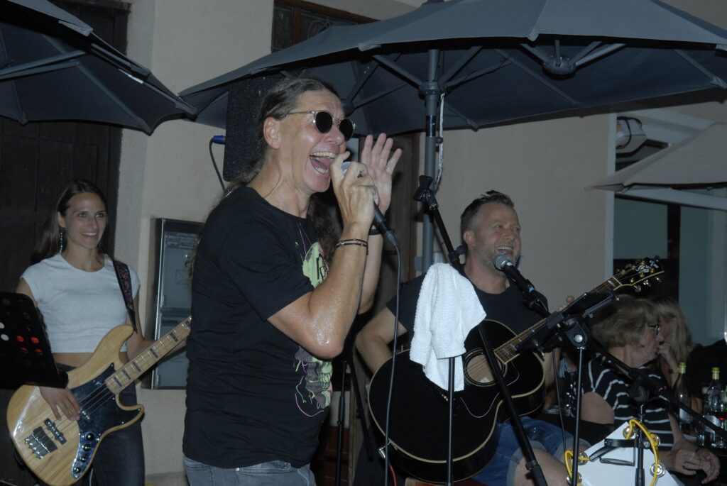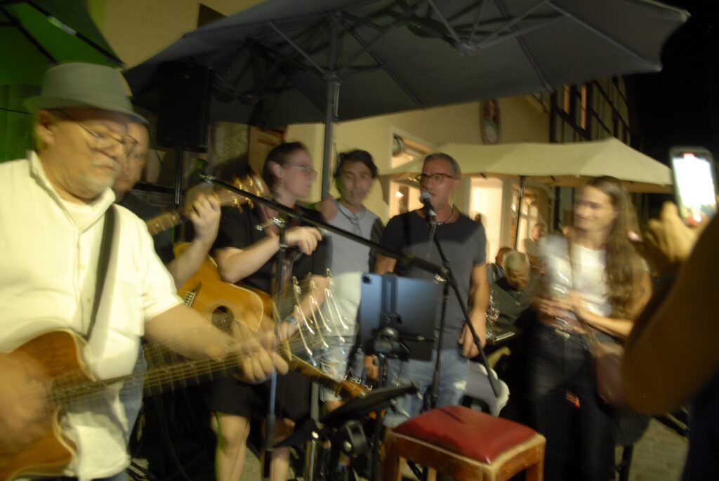 Mittwochs- Blues-Party in der Bachgasse vor der Osteria/ „Surprise“Voll ein Knüller/Gastgeber Luigi Pedage trat auch auf/Autoverkehr nervte/-immerin ein grüner Stadtrat genoss auch den Abend/Große Kulisse hatte ihren Spaß/Sänger Helmut Leng eine prima Entertainer/Alte Freunde wie Dieter Trutschel zu Gast/
