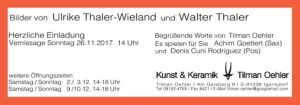 Die Ausstellung endet am Sonntag, 10. Dezember 2017 um 18 Uhr. Die Vernissage Kunst&Keramik + Bilder war am 26. November.