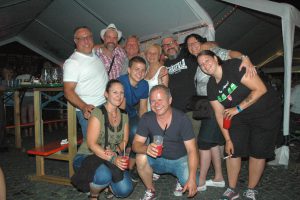 Norbert Wittmann (3.v.r.), Schwabacher Unterhaltungs-Ikone mit Freunden im Zelt des Lions Club. Foto: Hertlein