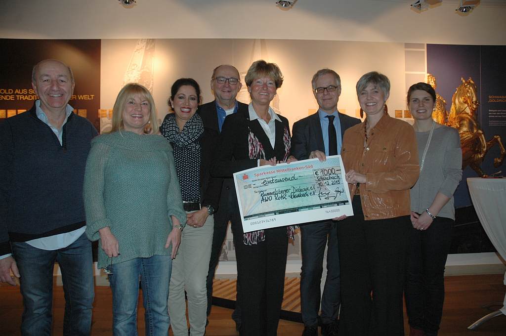 Im Dezember fand in der Friedenskirche  die Kultur-Veranstaltung „Künstler für Flüchtlinge“statt, am Donnerstag, 14.Januar, fand im Rathaus dieSchekcübergabe statt. Insgesamt waren 4309 Euro zusammen gekommen, die Summe wurde zu je gleichen Teilen an die Familien- und Altenhilfe, die Rummelsberger Diakonie, Wohngruppe Schwabach, an den Verband Sportstätten und die AWO verteilt.