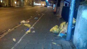 Wenn die Gelben Säcke des Nächtens tanzen wollen. Fotos: Matthias Hertlein