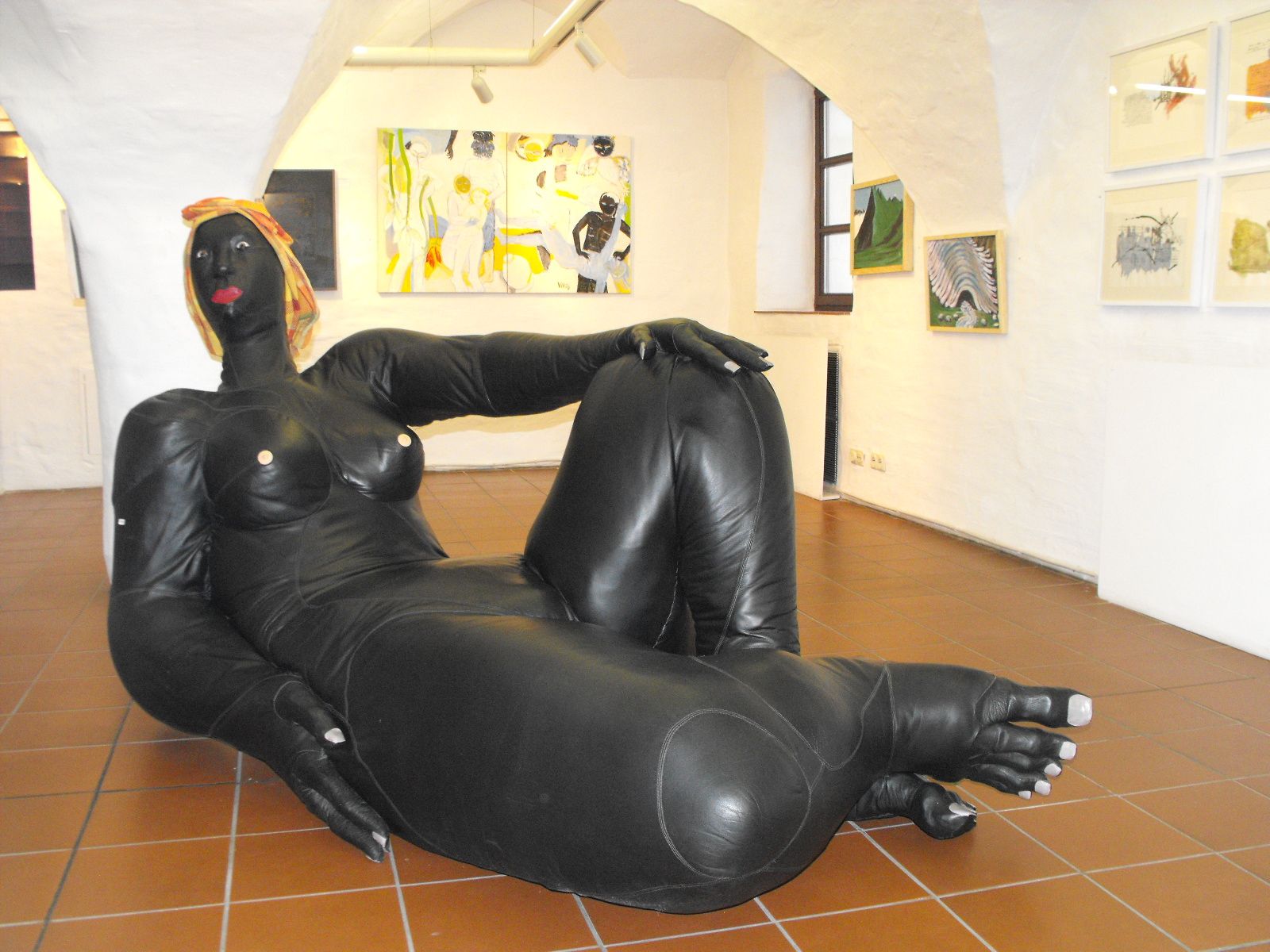 Clemens Heinls Monsterweib-Sofa  „Black Magic Woman“ war mit dem Schwabacher Bildhauer auch schon zu Besuch in Shenzhen. Foto: Matthias Hertlein